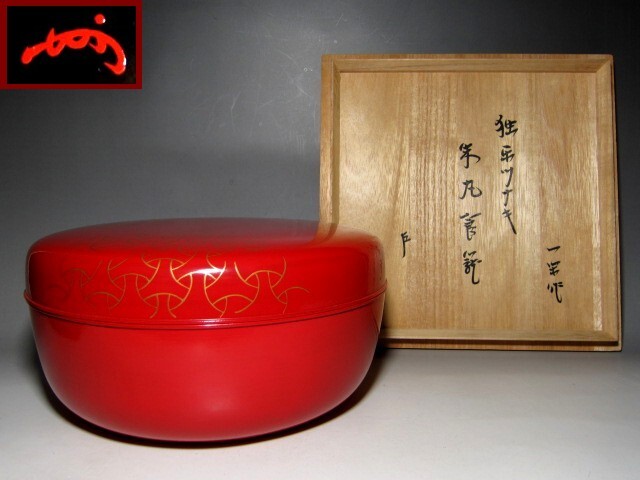 - 千家十職 飛来一閑 独楽繋ぎ 朱丸喰籠 表千家十三代 即中斎花押 e778