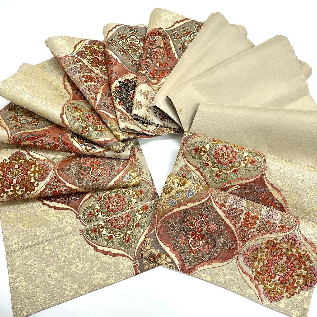 - 【七福】c636 逸品 高級品 正絹 袋帯 六通 向かい鳥 鳳凰 華文 金糸 銀糸 刺繍 豪華