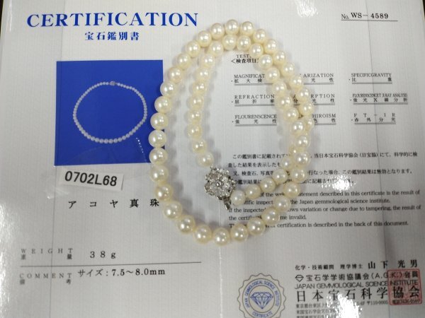 - 0702L68 本真珠 あこや ネックレス 宝石鑑別書付 約38g