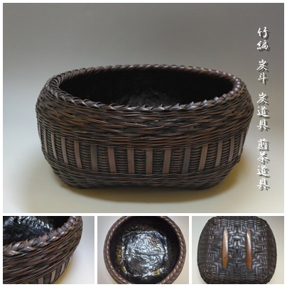 - 【S-170】竹編 炭斗 炭道具 煎茶道具 時代物