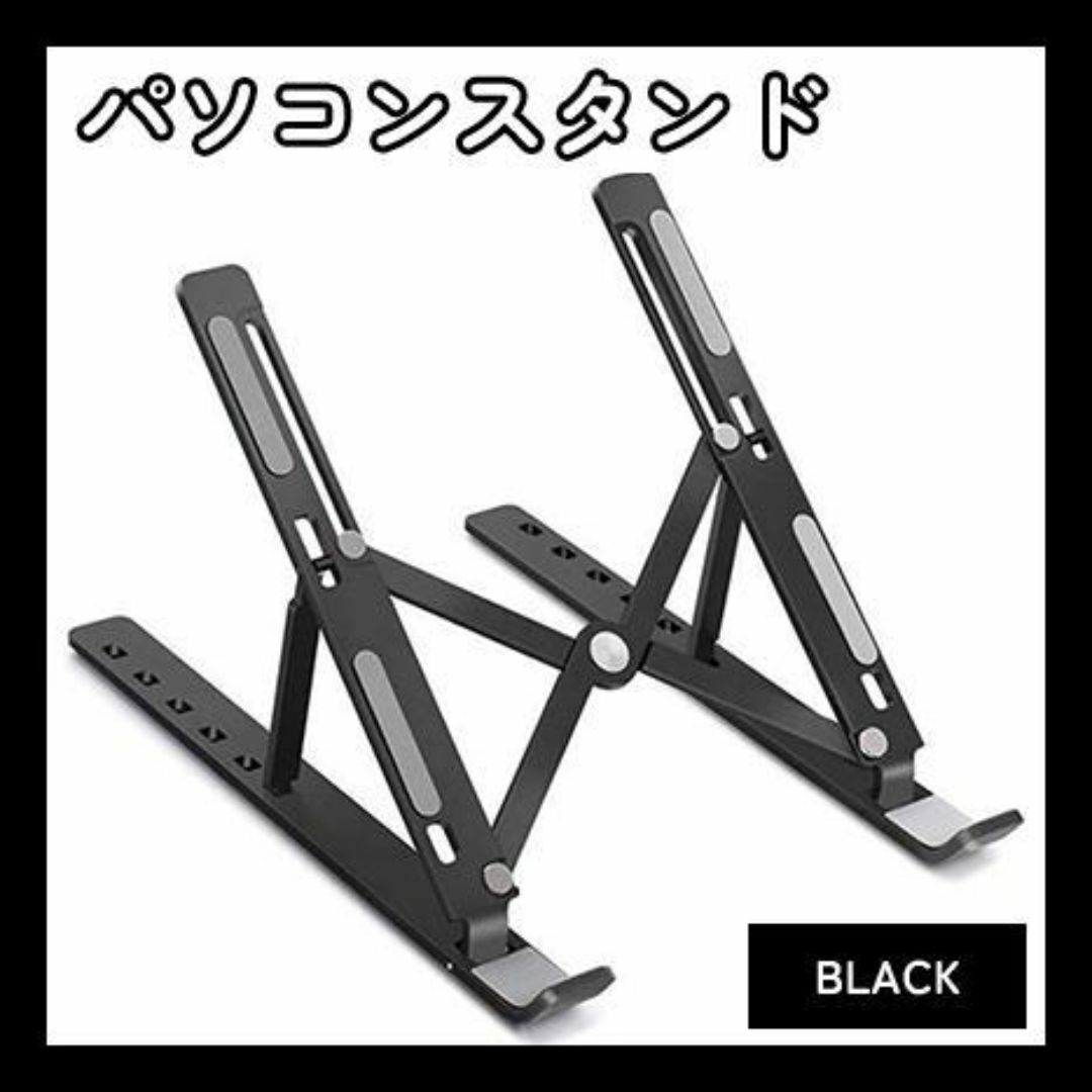 > ブラック スタンド ノートパソコン タブレット 端末 角度調整 持ち運び PC 高さ調整 調節可能 PCスタンド 軽量 コンパクト