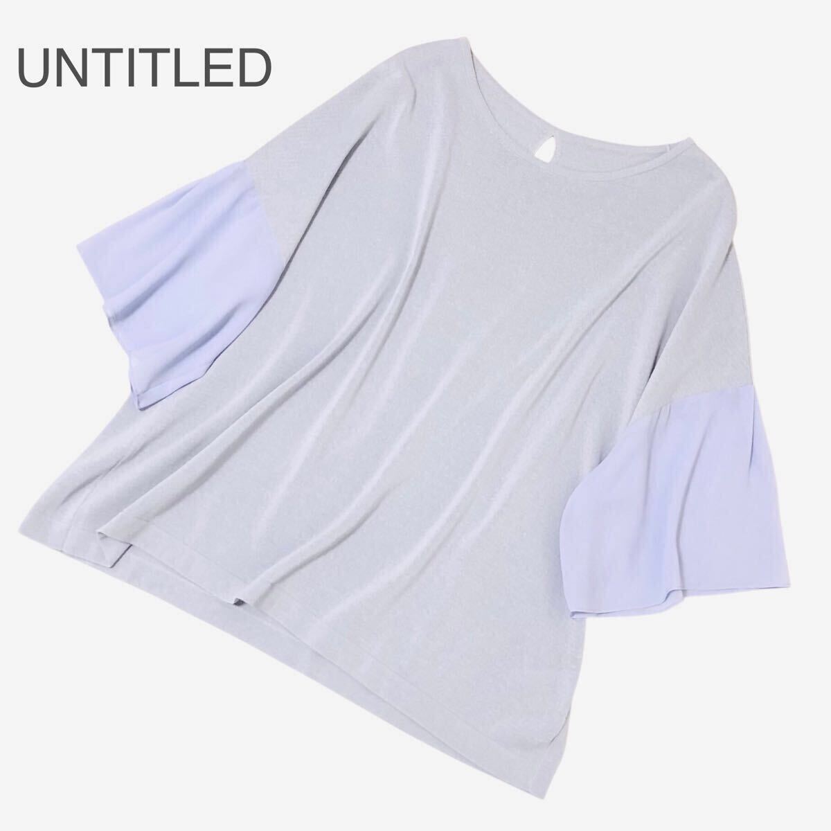 > 美品 UNTITLED 洗える シフォン袖 ニット プルオーバー 44 日本製 アンタイトル レディース トップス