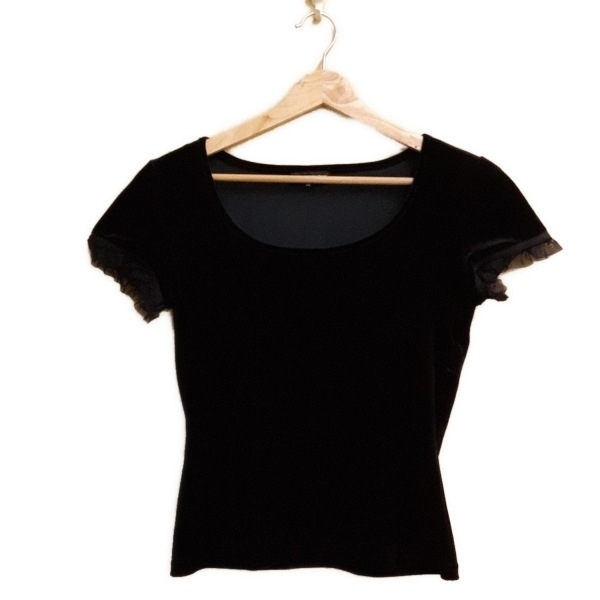 > フォクシーニューヨーク FOXEY NEW YORK 半袖カットソー サイズ40 M 17317 - 黒 レディース クルーネック/ベロア/レース/肩パッド 美品