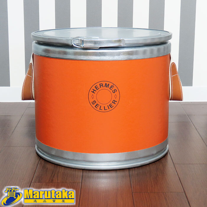- 【エルメス】サドルボックス スモール H800108E 9J オレンジ 馬具缶 セリエ 収納BOX インテリア オブジェ HERMES 中古 23-80-7