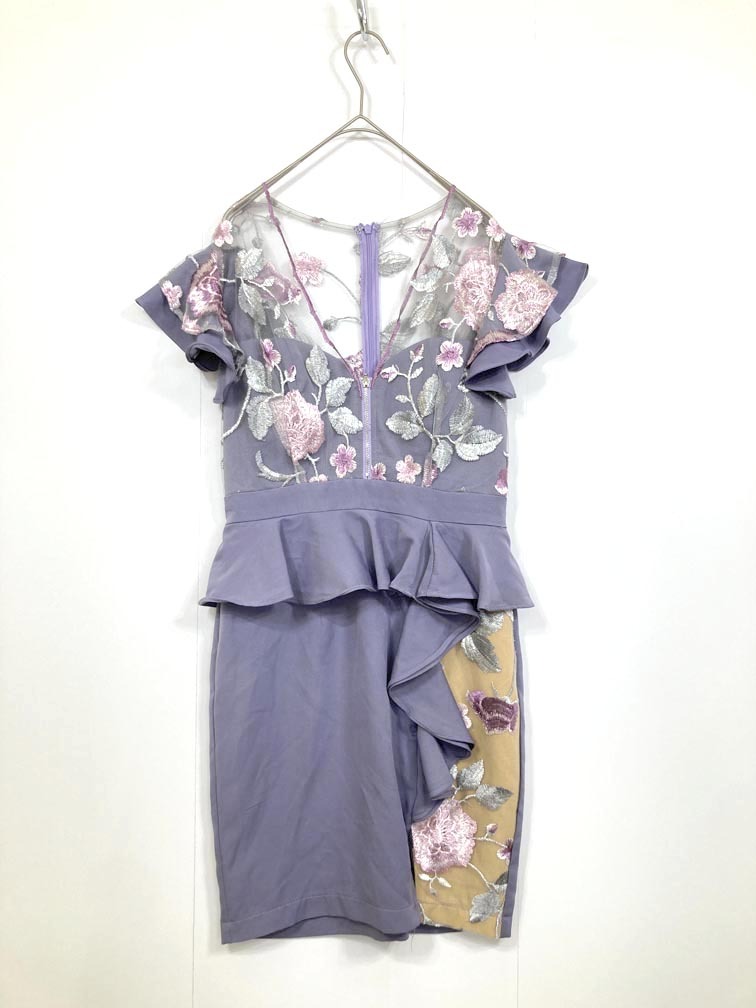 - ゆうパケットOK Dazzy store デイジー 刺 シアー ペプラム ドレス ワンピース sizeS/紫 ■◆