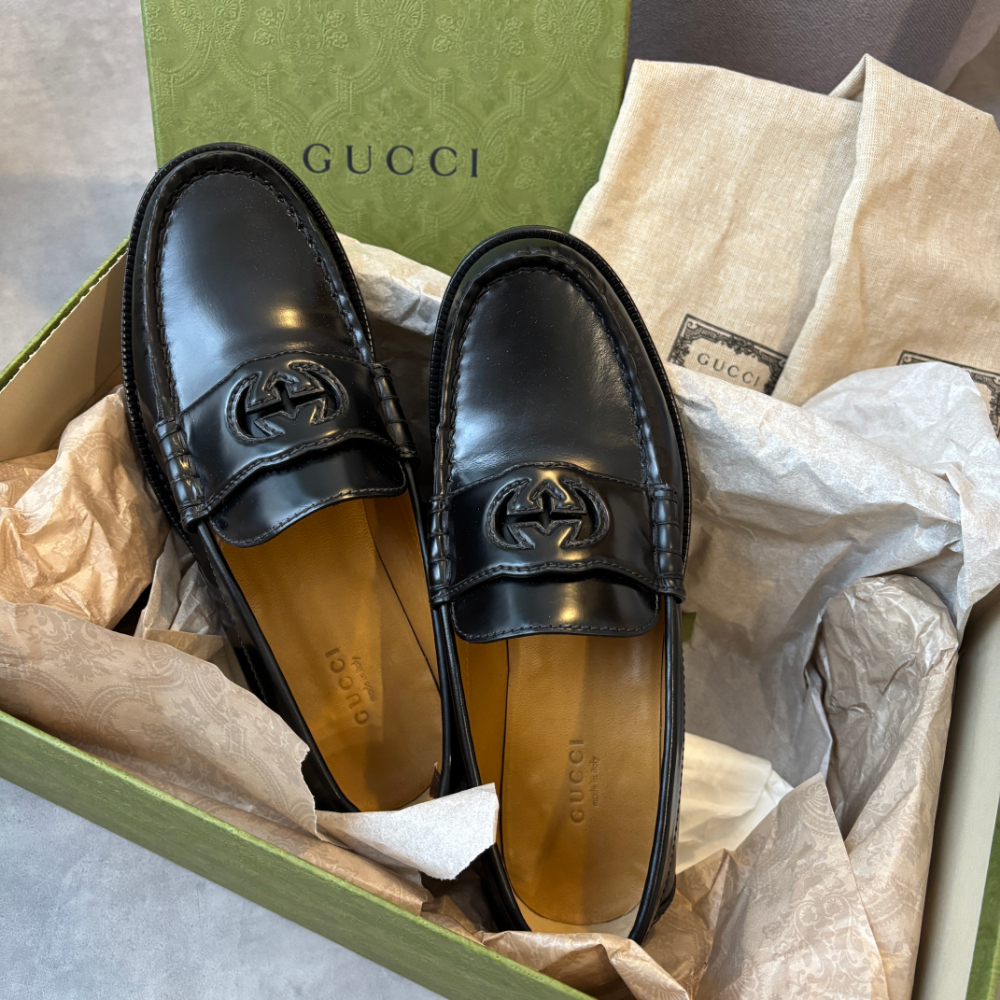 - GUCCI ローファー 革靴 レザー ブラック 黒 インターロッキングG 37