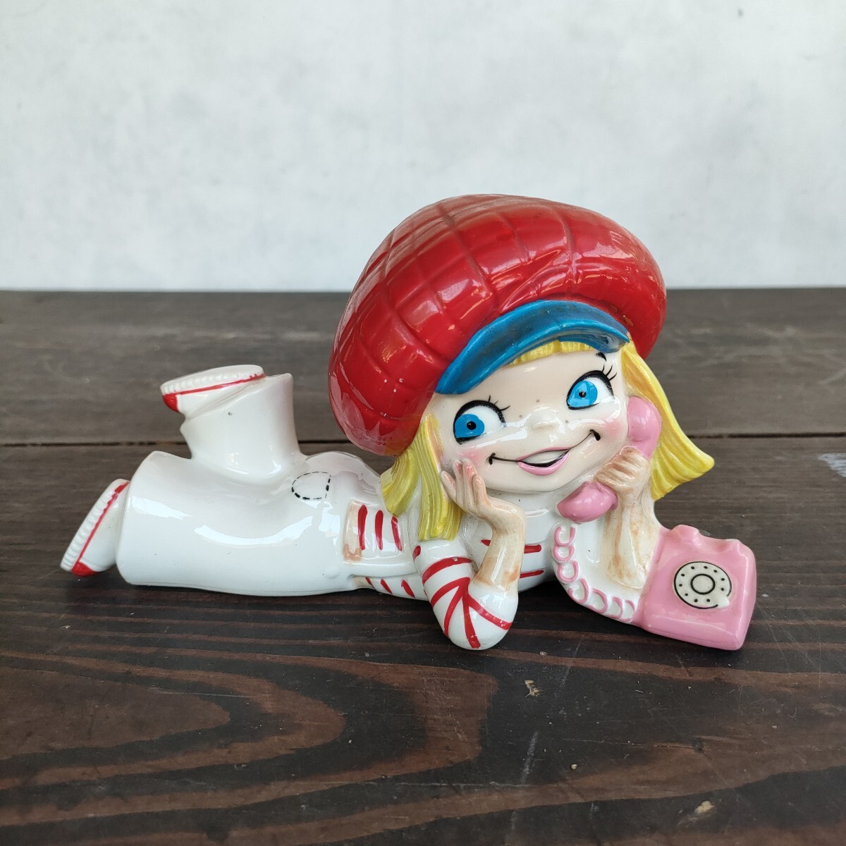 - 蔵出し 内藤ルネ貯金箱 受話器部分に欠けあり 当時物RUNE 希少 初出し 昭和レトロ ビンテージアンティークポップ 陶器製 置物 雑貨送料無料