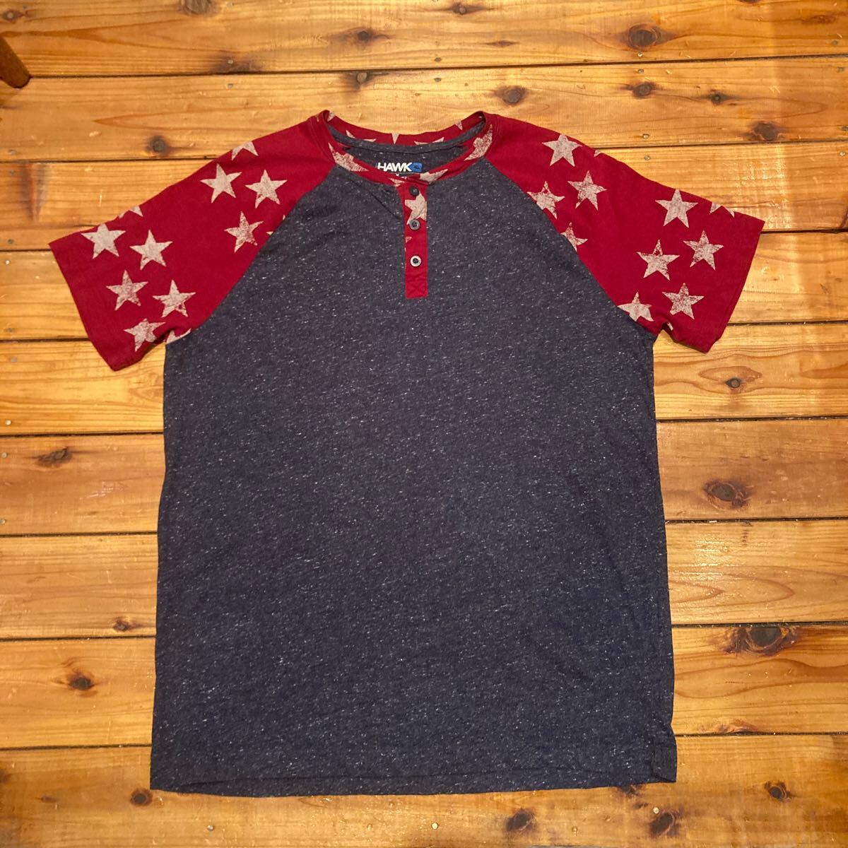 - HAWK ヘンリーネックTシャツ プリントTシャツ 半袖Tシャツ Mサイズ USA古着 アメリカ古着