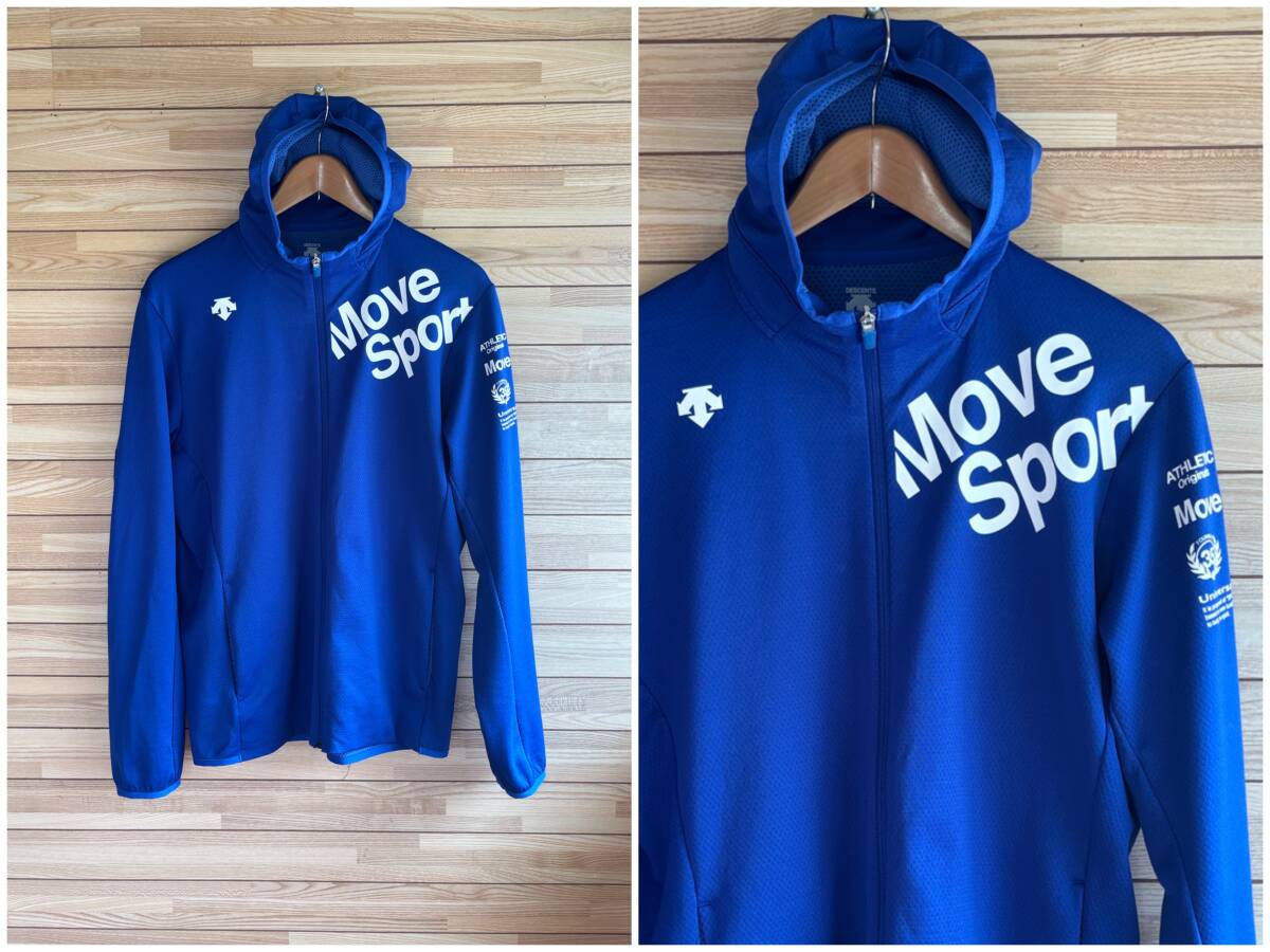 - #セール★DESCENTE デサント MOVE SPORT ムーブスポーツ 薄手 パーカー 吸放出 UVケア ジップ フード ブルー 青★大きい サイズ O XL★