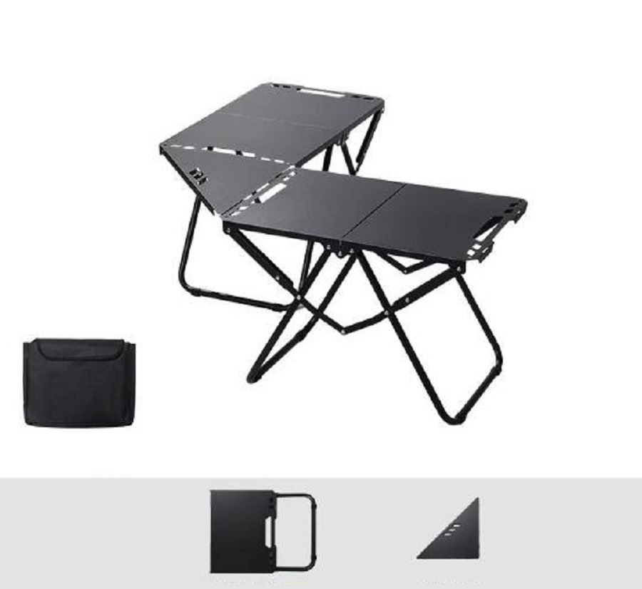 - 2点セット 超激レア キャンプ用 超高品質 全鋼製 折りたたみテーブル*2 接続天板 セット 58×36×40cm 2.7kg アウトドア 野外登山 収納付