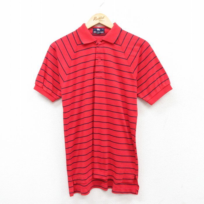 - M/古着 半袖 ポロ シャツ メンズ 90s ラグラン 赤他 レッド ボーダー 25jul05 中古 トップス