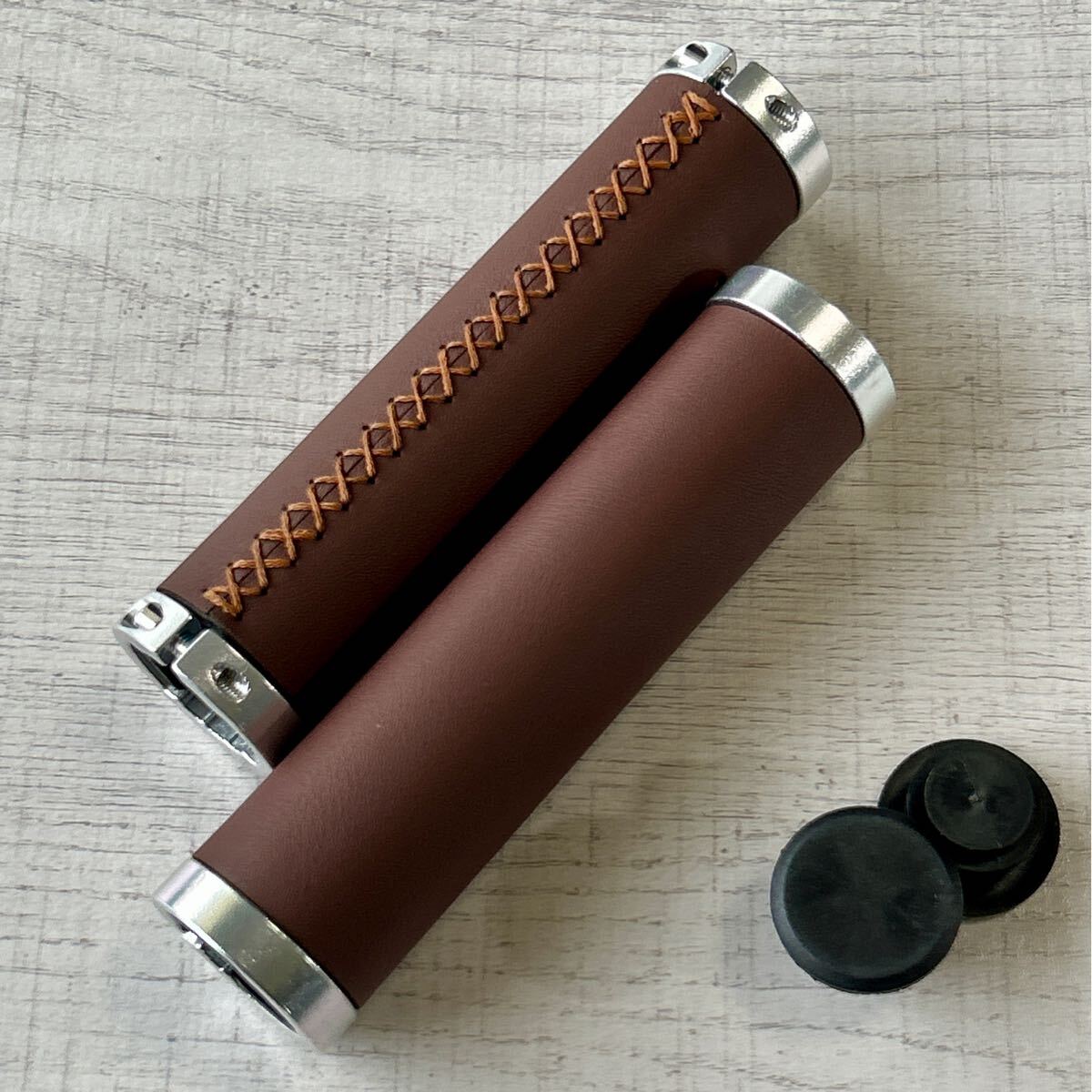 - 自転車グリップ ハンドルグリップ 筒形 レザー調 ダークブラウン