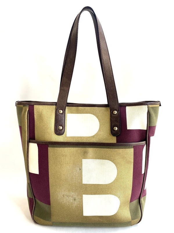 - 【即決】BALLY バリー 縦型 トートバッグ Bロゴ キャンバス レザー マルチカラー