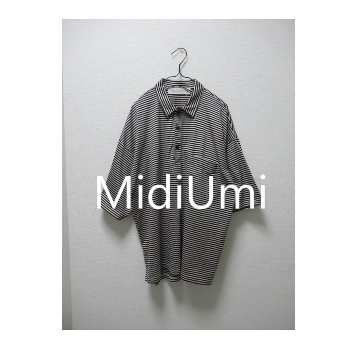 > MidiUmi☆ミディウミ カットソー ワイドポロシャツ ボーダー 日本製 ポロシャツ 黒×ベージュ コットン100% midi umi半袖ゆったり【中古】