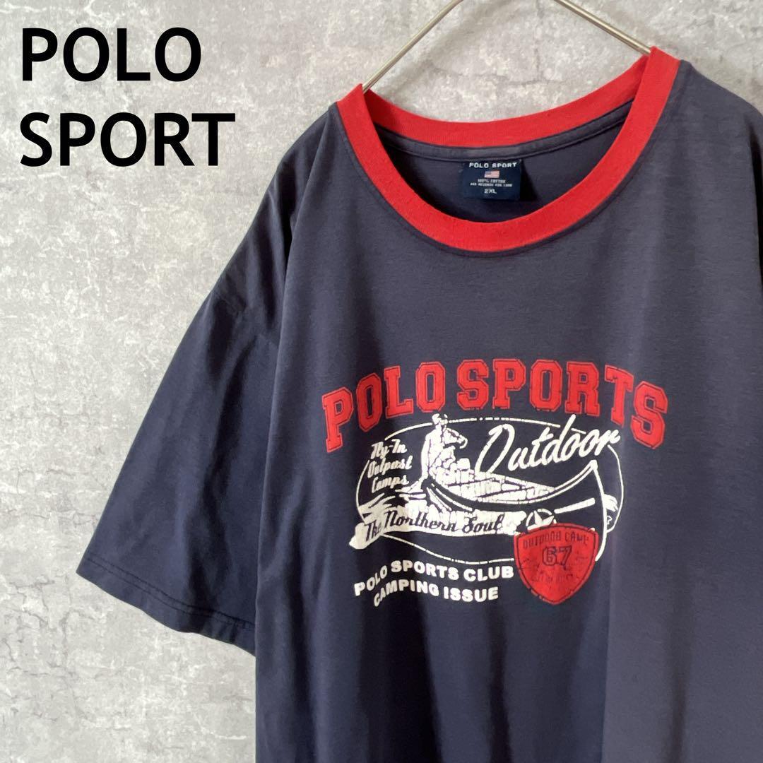 > POLO SPORTラルフローレン リンガーtシャツ メンズ2XLサイズ紺L相当