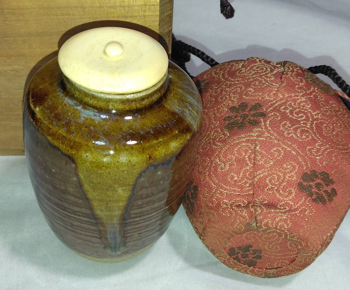- 茶道具 骨董茶入 骨董肩衝茶入 二重蔓牡丹唐草仕覆付き 骨董!!