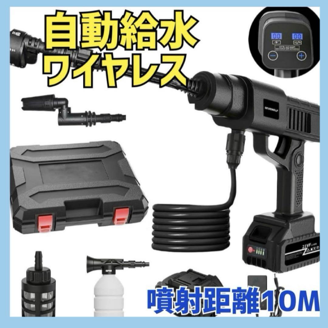 - 高圧洗浄機 コードレス 充電式 大容量バッテリー 強力 家庭用 初心者向け 噴射