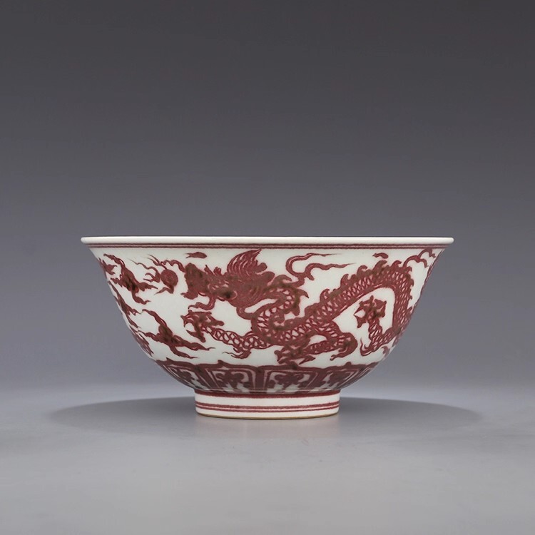 - AD15■中国古玩 唐物 大明宣徳年制款 釉里紅双龍雲紋大碗・大鉢 極品■