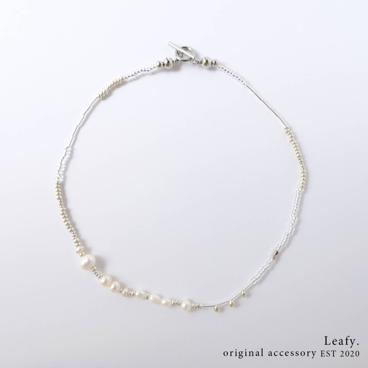 > clear&silver 淡水パールのビーズネックレス ビーズアクセサリー マンテル クリア シルバー 夏アクセサリー