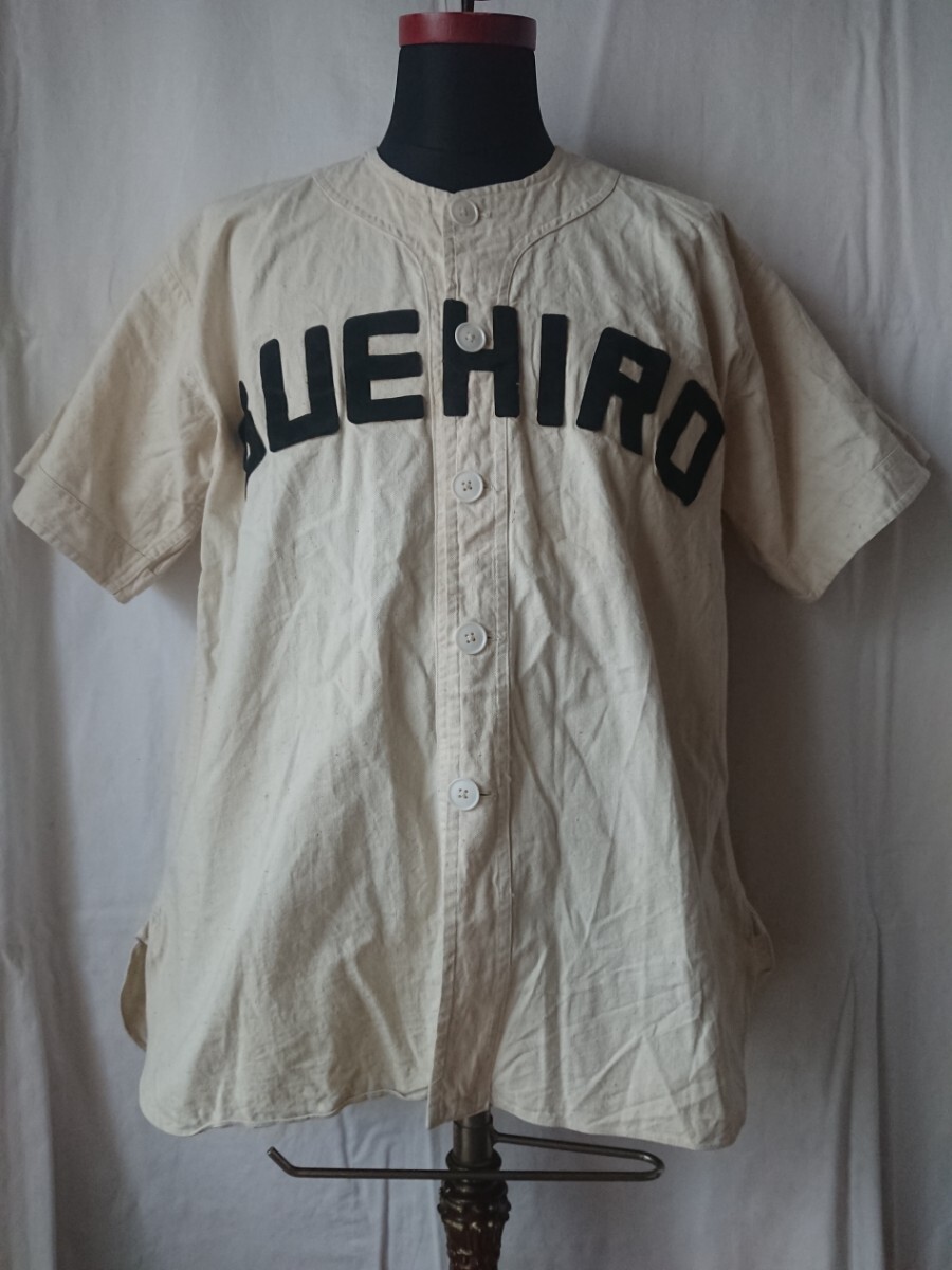 - 美品 日本物 昭和30年代 50s 60s ヴィンテージ ベースボール シャツ ユニフォーム 生成り 綿 生地 古布 M〜L中間サイズ マチ付き 衣装にも