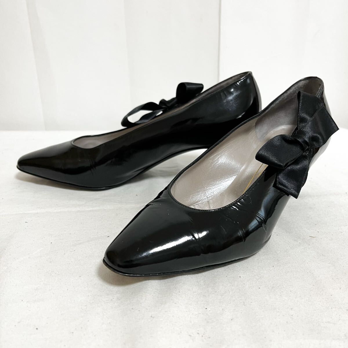 - 和788★ BRUNO MAGLI ブルーノマリ レザー パンプス ヒール リボン シューズ 36 ブラック レディース