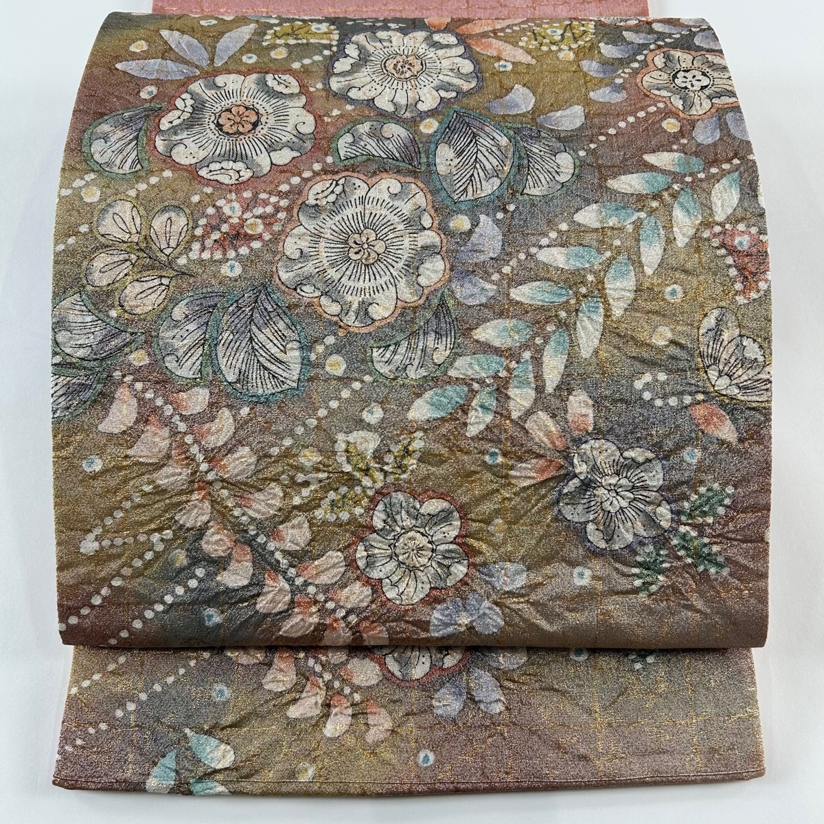 > 【在庫一掃】 袋帯 名品 辻が花 金通し ピンク お太鼓柄 正絹 【中古】
