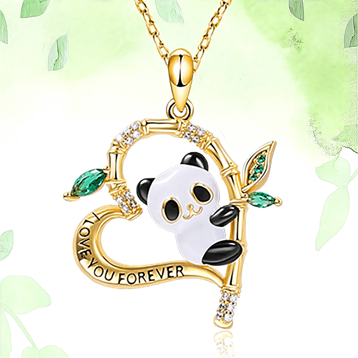 - 新品1円~★送料無料★金の笹 ハート翠玉エメラルド 白黒パンダ登りK18GFゴールドペンダント誕生日プレゼント旅行連休秋祭冬ギフト国内発送