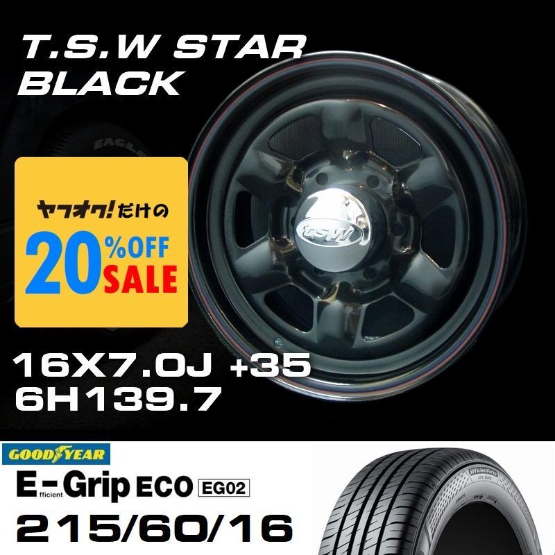 > 特価 TSW STAR ブラック 16X7J+35 6穴139.7 GOODYEAR E-GRIP 215/60R16 ホイールタイヤ4本セット