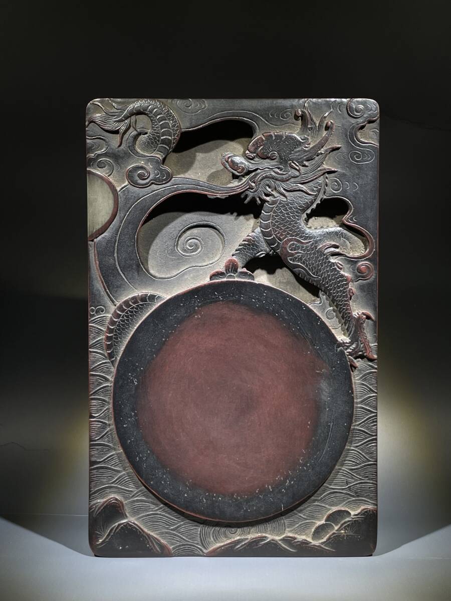 - 旧蔵 中国四大名硯-端硯 飛龍戯珠端硯 古硯 時代硯 文房硯 極細工 中国古玩 骨董品 古美味 207