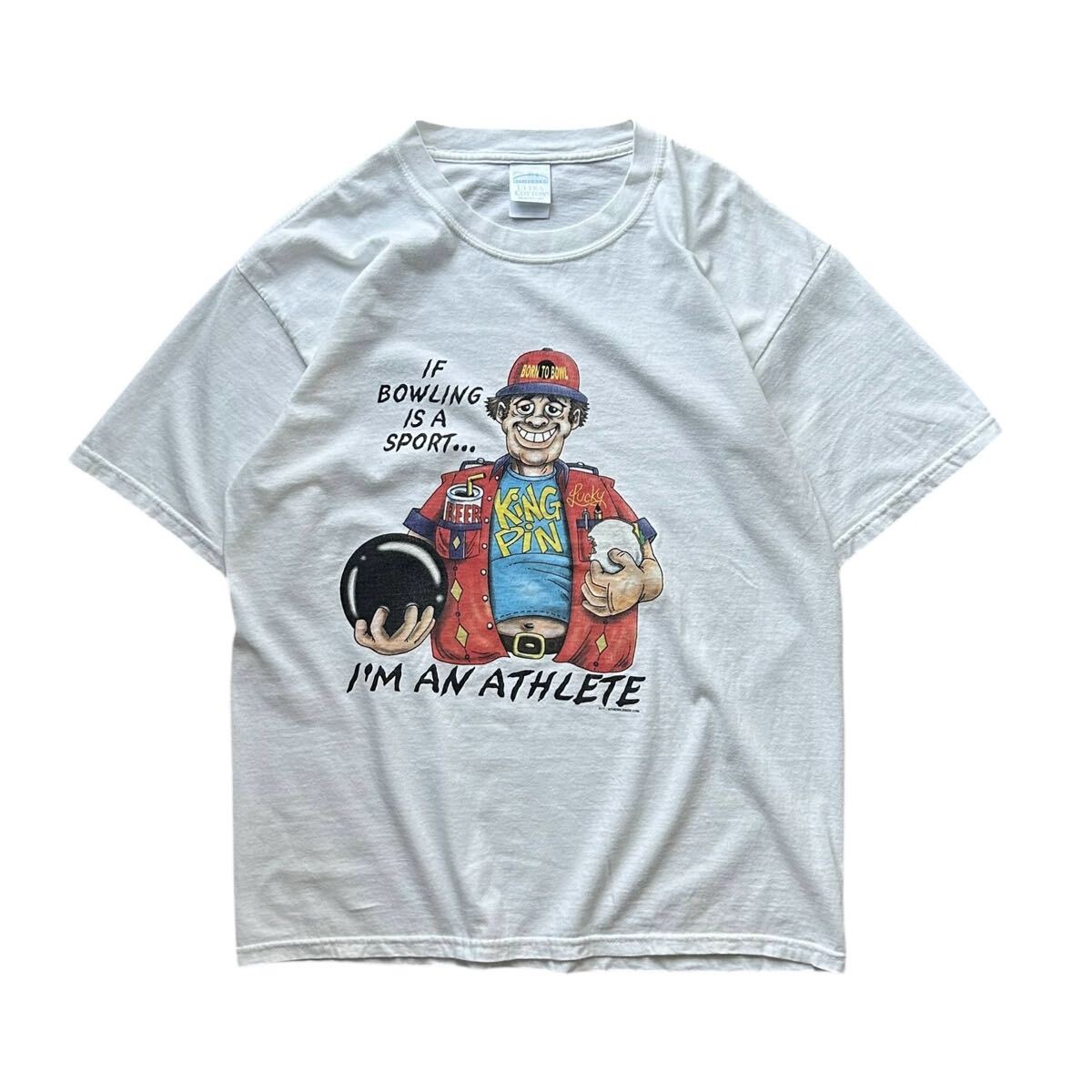 > 00’s GILDAN ギルダン Tシャツ L サイズ ホワイト 白色 ギャグ プリント イラスト キャラクター ボウリング スポーツ アメリカ 半袖