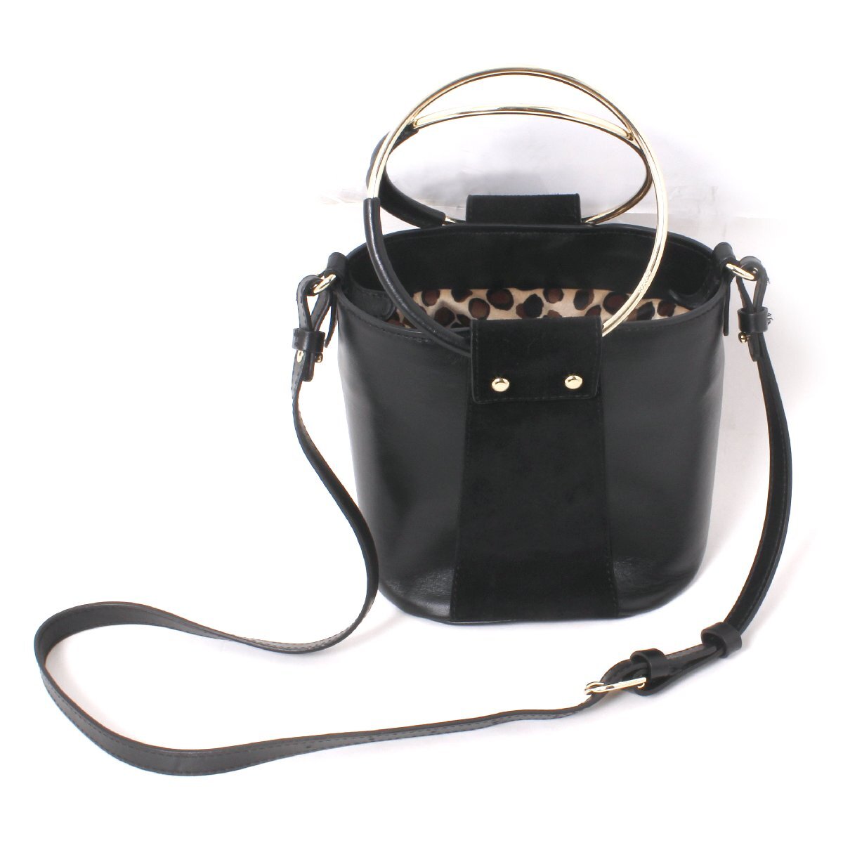 - repetto MANEGE LEATHER BAG 定価86,900円 ブラックxレオパード レペット レザー ショルダーバック ハンドバック