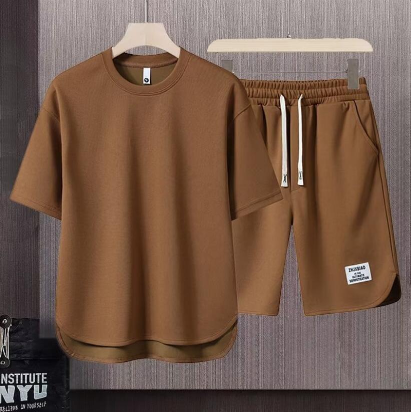 - 夏新作 / 男性用 上下セットアップ メンズ ジャージ スウェット無地 半袖Tシャツハーフパンツスポーツウェアトレーナー部屋着 / コーヒー
