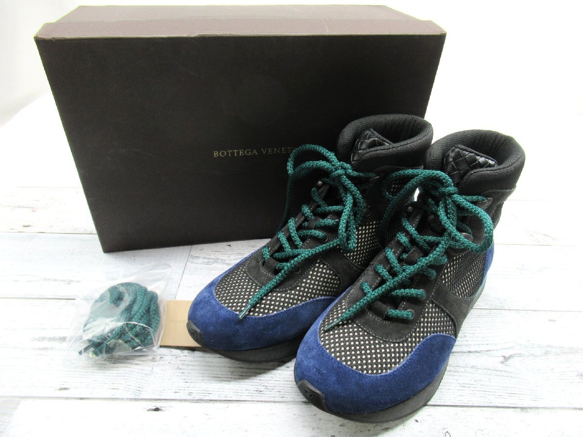 > ☆【B送900円】2013 Bottega Veneta ボッテガヴェネタ トレッキングシューズ イントレチャート スエード ブーツ 黒×ブルー 41 1/2