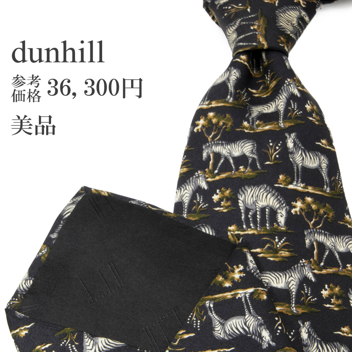 - 送料無料 ダンヒル ネクタイ シルク 黒 ブラック 白 ホワイト ブロンド 緑 動物 アニマル シマウマ ロゴ マーク ブランド イタリア製 P252