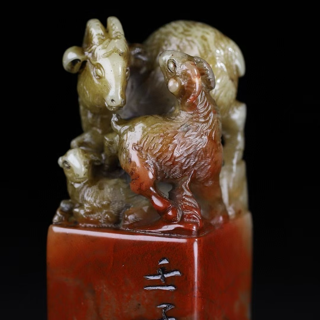 - 印鑒 寿山石 秘藏 清代『三羊開泰山水印』 印章 古印材 印鑑の方 老玉 唐物 古玉彫 天然石 稀少珍品 古美術 古賞物 古置物 旧蔵 7.15