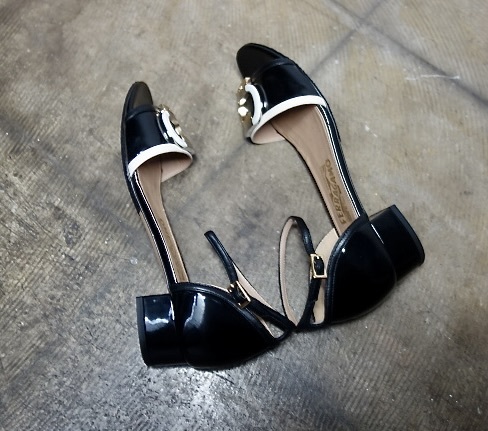> TK 新品 可愛いデザイン Salvatore Ferragamo パンプス 黒白 ゴールド シルバー 6,5 D フェラガモ