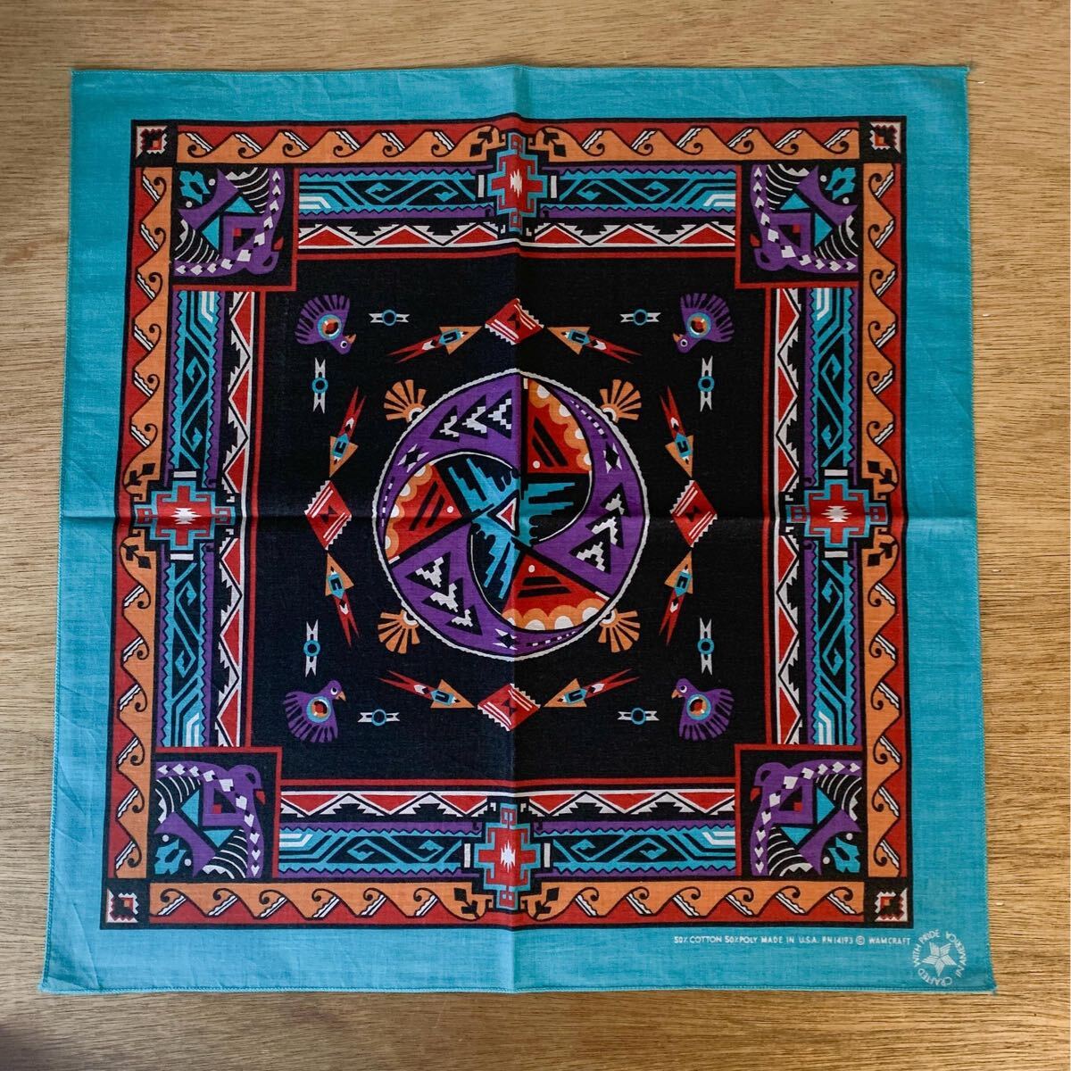 - 送料無料 Vintage バンダナ ネイティブ柄 ハンカチ アメリカ仕入れ 雑貨 サンダーバード USA製 コーデ アイテム 小物 ヴィンテージ A1787