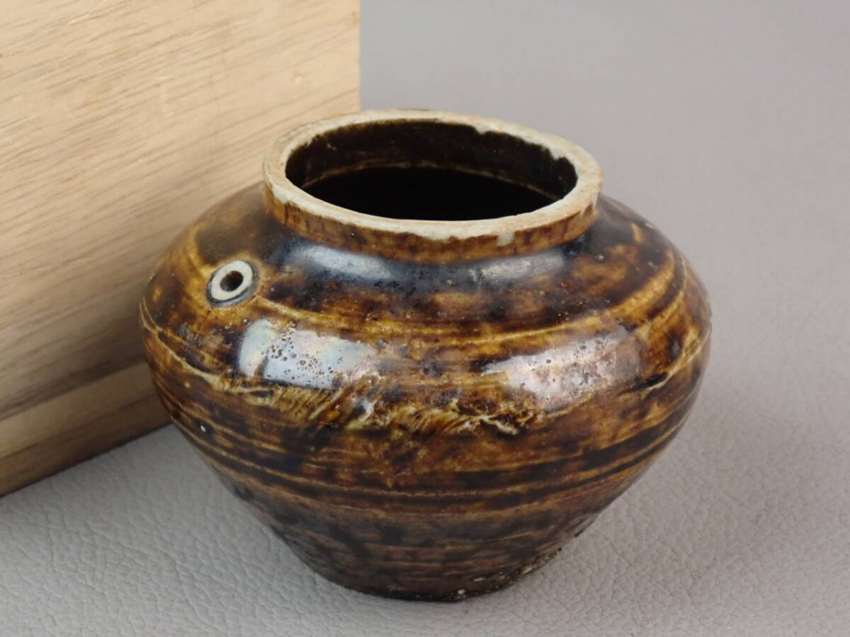 - 【骨董・茶道具】★李朝★★飴釉小壷 gm046ub 掛花入 水滴 文房具 書道具 花道 華道
