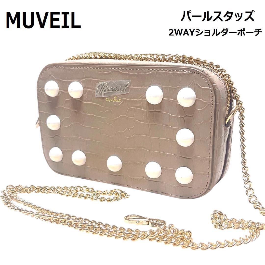 - 2【新品】MUVEIL ミュベール クロコ型押しレザー ショルダーポーチ ミニバッグ パール グレージュ ベージュ グレー