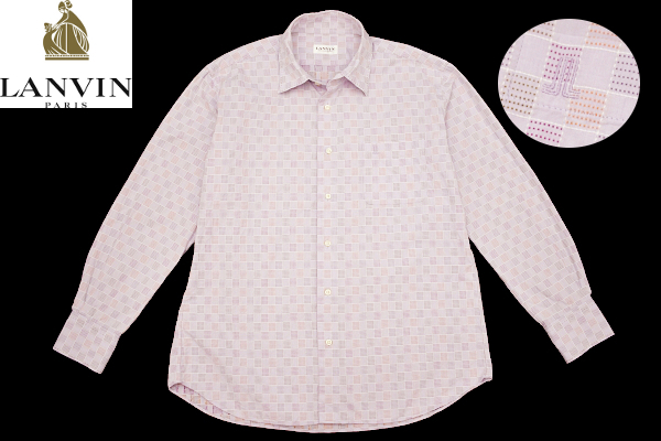 > Y-8915★送料無料★美品★LANVIN COLLECTION ランバン コレクション★日本製 胸ロゴ刺繍 パープル紫 チェック柄 織り生地 長袖 シャツ L