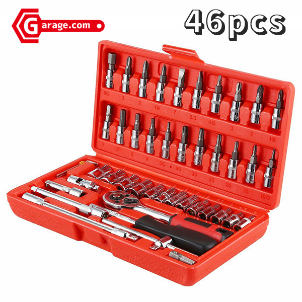 > 46pc 1/4 (6.35mm) ソケット ラチェットレンチツールセット 自転車バイク 整備 メンテナンス T067
