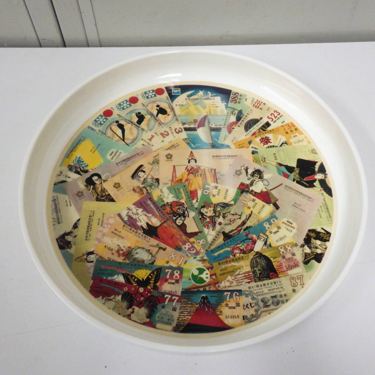 - 昭和 レトロ お盆 丸 和柄 インテリア 雑貨 アンティーク お盆 絵皿 宝くじ