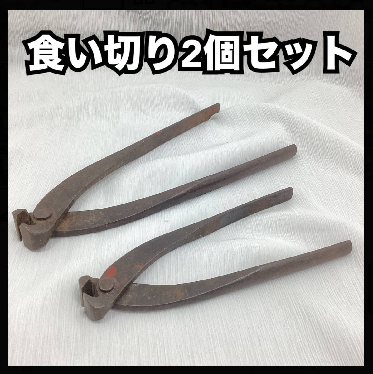 - 食い切り 喰い切り クギ頭きり 大工道具 大小 2個 釘抜き 針金切り 建築 切断 金属工具 工具 ニッパー 古道具 盆栽 根切り欠けあり H1750