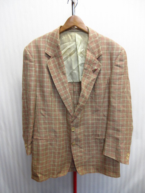 - エルメネジルドゼニア リネンジャケット メンズ50 L XL 麻ジャケット 春夏ブレザー チェック柄テーラードジャケット サマージャケット07151