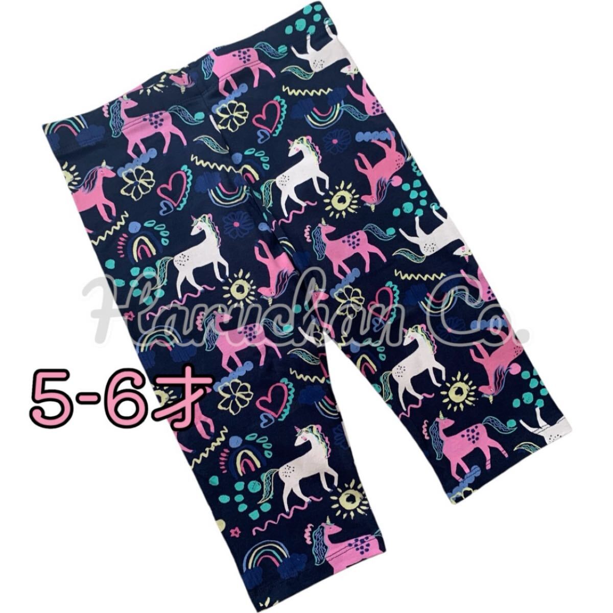 - ●未使用●6才 ダークネイビー ユニコーン柄 クロップド丈 レギンス