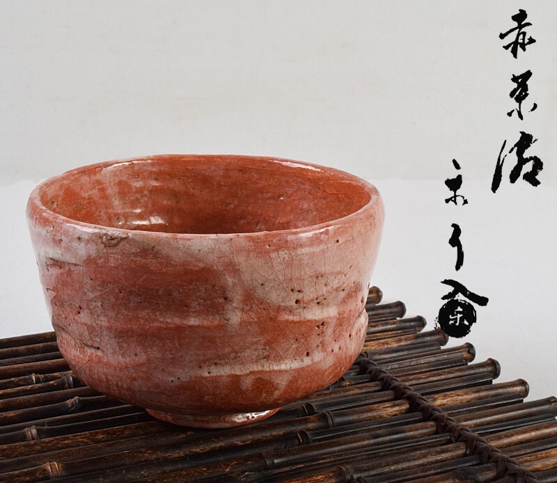 - 茶道具 楽吉左衛門 九代 了入作 赤楽茶碗 共箱 MGED