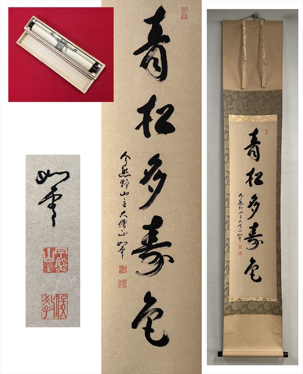 - 【千寿】今熊野観音寺 青松多寿色 一行書 紙本 B1589◆箱 在銘 季節掛 茶掛 掛軸 掛物 茶道具
