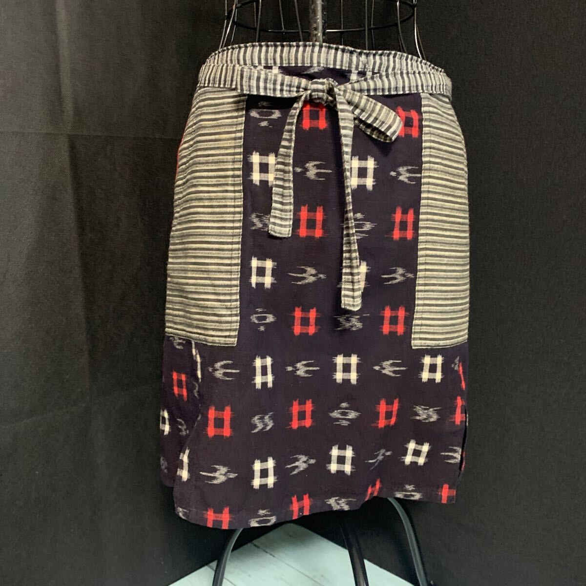 - ☆エプロン 前掛け 絣 生地 刺し子 リメイク 素材 ハンドメイド 古布 型染め 手作り パッチワーク カスリ かすり (A-2590)
