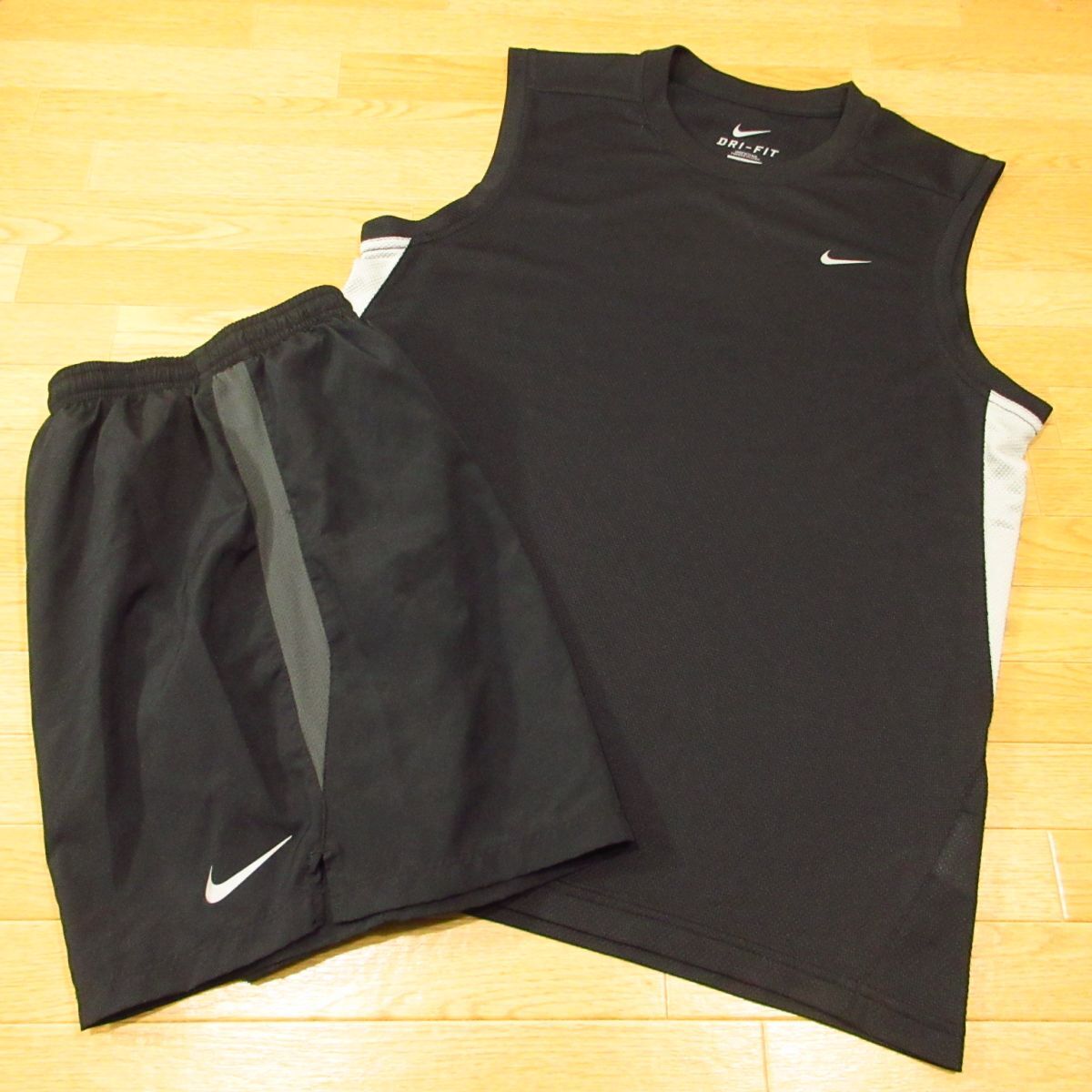 > ◎極美品!NIKE Running ナイキ ランニング M 上下セット ノースリーブ Tシャツ&ショートパンツ DRI-FIT 速乾 メンズ 黒◆BA2877
