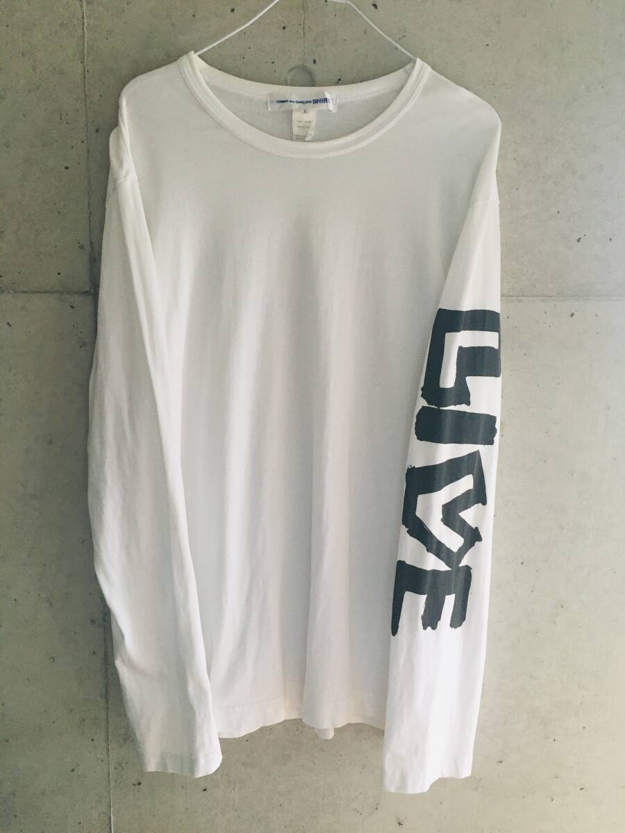 > 【★激希少★メンズL★送料無料!】コムデギャルソンシャツ ホワイト LIVE 袖 ロゴ入り 白 長袖 Tシャツ COMME des GARCONS SHIRT トルコ製